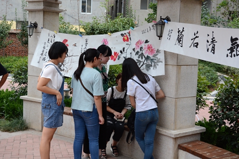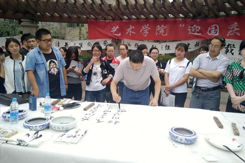 活動中,藝術(shù)學(xué)院美術(shù)學(xué)專業(yè)教師及學(xué)生30余人以筆代言,以畫為媒,通過一幅幅形式多樣,立意新穎的書畫作品,抒發(fā)自己對祖國、對傳統(tǒng)文化的熱愛之情。活動期間共創(chuàng)作書法、國畫等作品40余幅,引來眾多師生觀摩學(xué)習(xí)。