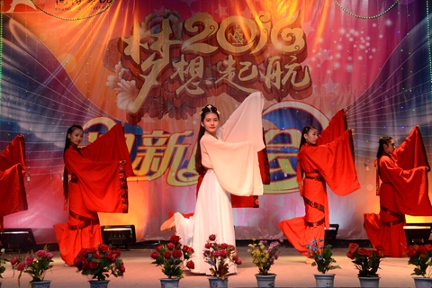 本次晚會以“夢想起航”為主題,在歌伴舞《陽光路上》婀娜多姿的舞蹈中拉開帷幕。整場晚會形式多樣,現代與古典同臺,聲樂與器樂相和,浪漫與詼諧相伴。歌舞、相聲、魔術、樂器獨奏等精彩的節目為觀眾呈現了一場豐盛的視聽盛宴。由藝術學院選送的笛子獨奏《揚鞭催馬運糧忙》笛聲悅耳、美妙動聽,使觀眾感受到了商洛學院人的奮斗精神與青春氣息。生物學院選送的腰鼓表演《歡天喜地迎新生》與化材學院選送的陜北名歌《東方紅》,具有濃厚的地方特色,展現出了我校學子多才多藝、昂揚向上、勇于創新的精神風貌。晚會在藝術學院教師王娜娜等帶來的歌伴舞《復興之歌》中步入了高潮,最終在陣陣掌聲中完美謝幕。