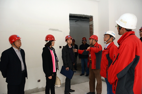 10月13日下午,陜西省質量強省工作推進委員會考核組及市工商和質監局局長洪智民,市住建局副局長李志懷,市政府政務公開辦公室主任尹章銀一行來我校對綜合教學樓建設工程進行檢查指導。副校長劉寶盈陪同檢查。