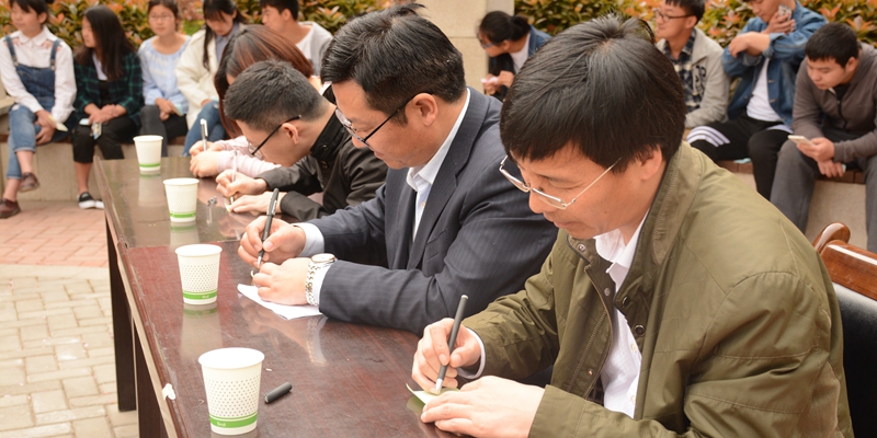 4月14日,數計學院團總支在二號教學樓前舉辦“與書同行,墨香存華”活動簽字儀式,2016級全體同學參加本次活動。
