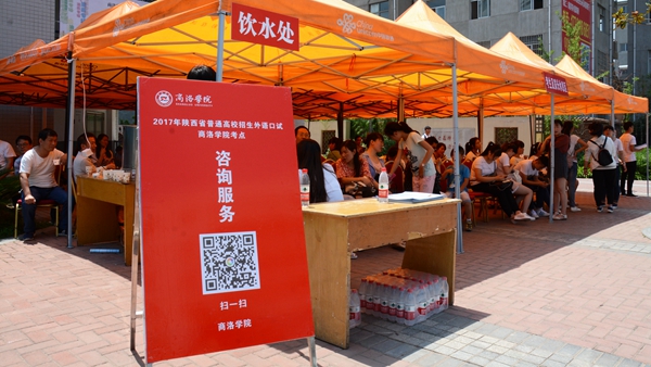 6月18日,是陜西省普通高校招生外語(yǔ)口語(yǔ)考試日。上午7:30開始,1541名考生陸續(xù)從商洛各地趕赴我校,在學(xué)生志愿者的引導(dǎo)下,有序排隊(duì)進(jìn)入考場(chǎng)參加考試,家長(zhǎng)則在指定區(qū)域休息等候。