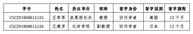 近日,國家留學基金委發布2019年西部地區人才培養特別項目(以下簡稱“西部項目”)錄取名單,我校發展規劃處王學軍教授,化材學院王建芳副教授獲得該項目的錄取資格,獲批公派出國留學一年。