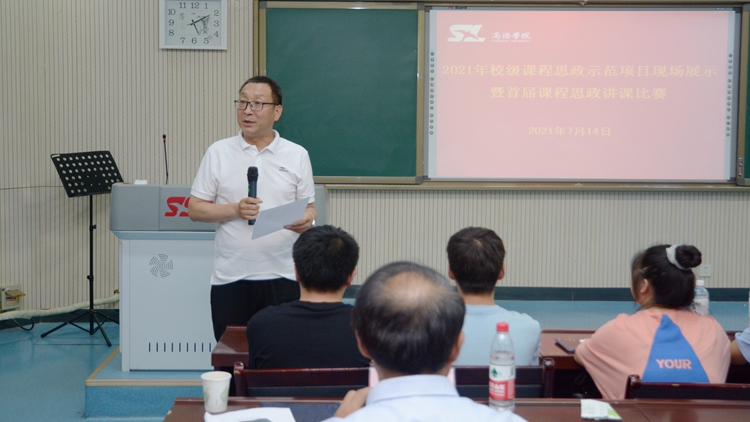 劉寶盈宣布比賽結果并做總結講話。他要求全體教師要以本次比賽為契機,持續加強“課程思政”理論素養,找準實施“課程思政”教學的切入點,錘煉“課程思政”教學技能,形成示范效應,激勵更多教師、更多課程積極開展“課程思政”建設與創新,形成“門門有思政、課課有特色、人人重育人”的良好局面,使各類課程與思想政治理論課程同向同行,發揮“課程思政”潤物無聲的作用,推動我校“課程思政”建設不斷取得新成效。