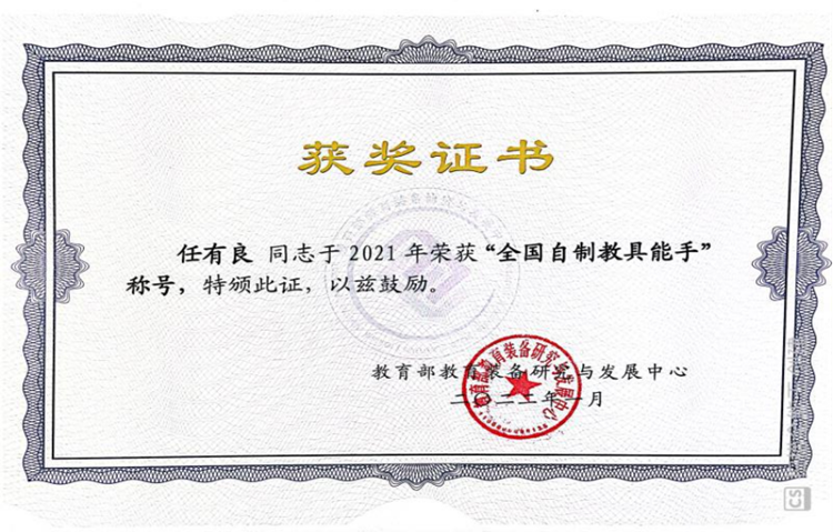 任有良團(tuán)隊(duì)致力于實(shí)驗(yàn)教學(xué)方法改革,借助教具制作,在教育科研、課堂教學(xué)等活動(dòng)中取得了一系列成果。先后發(fā)表相關(guān)論文18篇;授權(quán)專(zhuān)利12件,其中發(fā)明專(zhuān)利4件;自制教具20余件,榮獲陜西省基礎(chǔ)教育優(yōu)秀教學(xué)成果自制教玩具類(lèi)成果一等獎(jiǎng)三項(xiàng),二等獎(jiǎng)三項(xiàng)。充分展現(xiàn)了我校在自制教具方面深厚的底蘊(yùn)和在科研實(shí)踐上不懈的創(chuàng)新。