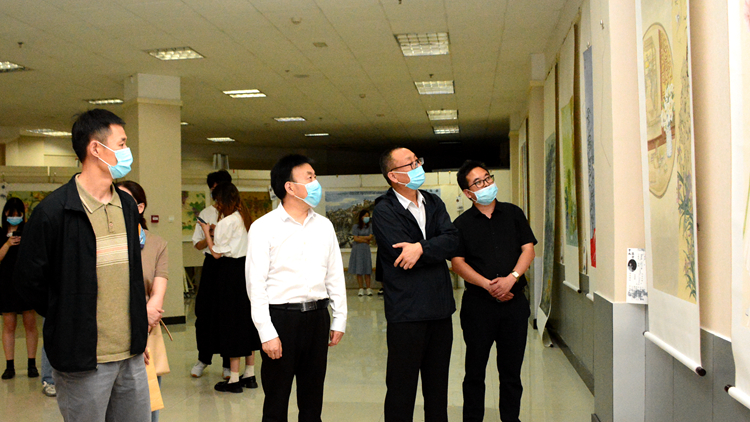 5月31日上午,校黨委書記張志昌,黨委副書記彭虎軍、劉勇,副校長(zhǎng)劉寶盈前往圖書館藝術(shù)展廳參觀指導(dǎo)藝術(shù)學(xué)院美術(shù)學(xué)國畫方向2022屆畢業(yè)作品匯報(bào)展。黨委辦公室負(fù)責(zé)人、藝術(shù)學(xué)院黨政負(fù)責(zé)人和師生代表陪同參觀。