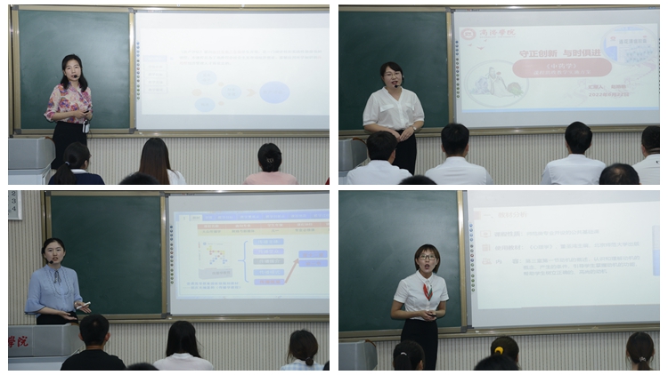 在校級決賽環(huán)節(jié),8位選手分別進行了5分鐘的說課和15分鐘的現(xiàn)場教學展示。參賽教師們依據(jù)課程特點,深入挖掘課程蘊含的思想政治教育資源元素,有機融入家國情懷、法治意識、社會責任、人文精神、仁愛之心等思政元素,展示了各具特色的教學設計和教學風采,生動體現(xiàn)了知識傳授與價值引領相統(tǒng)一、教書與育人相統(tǒng)一、言傳和身教相統(tǒng)一、潛心問道和關注社會相統(tǒng)一、學術自由和學術規(guī)范相統(tǒng)一的特點。最終電信學院教師李亞文榮獲“課程思政教學標兵”榮譽稱號,人文學院教師劉玉婷、健康學院教師張文平榮獲“課程思政教學骨干”榮譽稱號,健康學院教師黃笛、人文學院教師馮麗君榮獲“課程思政教學能手”榮譽稱號。