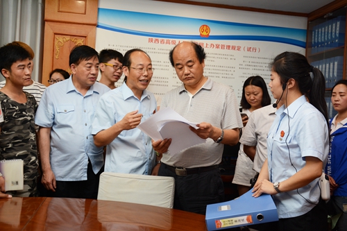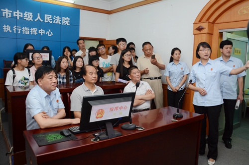 活動(dòng)期間,校領(lǐng)導(dǎo)劉建林、范新會(huì)及師生依次參觀了商洛中院的審判法庭、科技法庭、黨建活動(dòng)室、審判質(zhì)效管理辦公室和執(zhí)行指揮中心以及法官們工作生活場地,感受人民法院的神圣,感知審判執(zhí)行全過程,零距離了解人民法官。