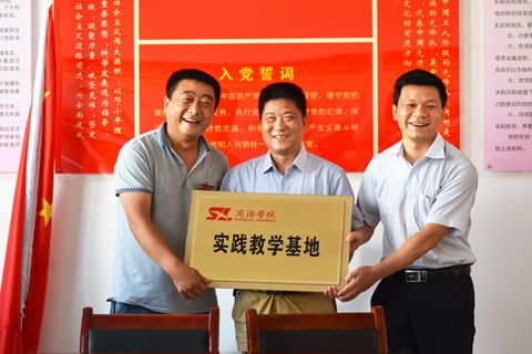 范新會與李傳偉分別代表商洛學院與丹鳳縣人民政府為實踐教學基地揭牌,張利華代表竹林關鎮接牌。范新會與李娜分別代表商洛學院與竹林關鎮簽訂實踐教學基地協議。