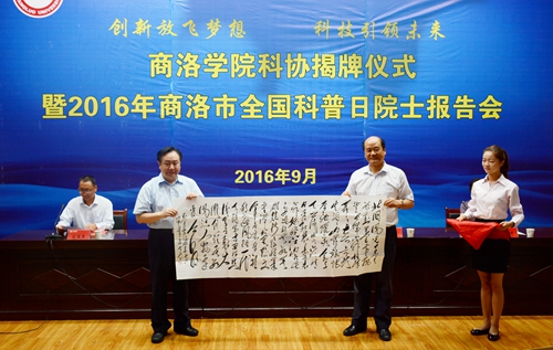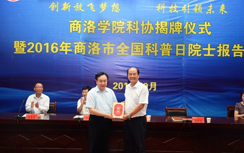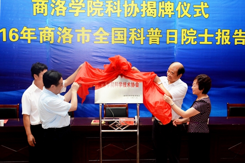 儀式上,劉建林、樊代明、宋奇志、閆彩芹共同為“商洛學院科學技術協會”揭牌。
