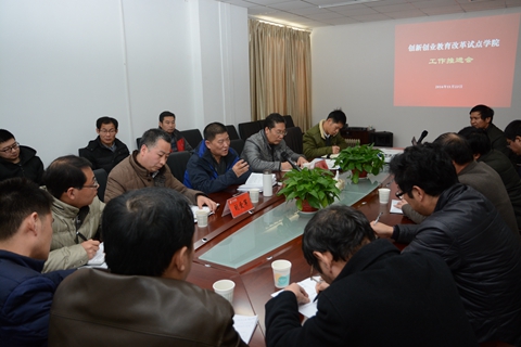 11月23日,我校召開創(chuàng)新創(chuàng)業(yè)教育改革試點(diǎn)學(xué)院建設(shè)工作推進(jìn)會(huì)。黨委副書記、副校長范新會(huì)出席會(huì)議,對(duì)進(jìn)一步理清思路,明確創(chuàng)新創(chuàng)業(yè)教育改革試點(diǎn)學(xué)院建設(shè)方向提出了具體要求。范新會(huì)強(qiáng)調(diào),要把創(chuàng)新創(chuàng)業(yè)教育和教學(xué)科研工作緊密結(jié)合,著力培養(yǎng)學(xué)生的創(chuàng)新精神、創(chuàng)業(yè)意識(shí),通過試點(diǎn)學(xué)院建設(shè)全面推動(dòng)我校創(chuàng)新創(chuàng)業(yè)教育。化材學(xué)院相關(guān)負(fù)責(zé)人及教師代表參加了推進(jìn)會(huì)。會(huì)議由教務(wù)處處長李超主持。