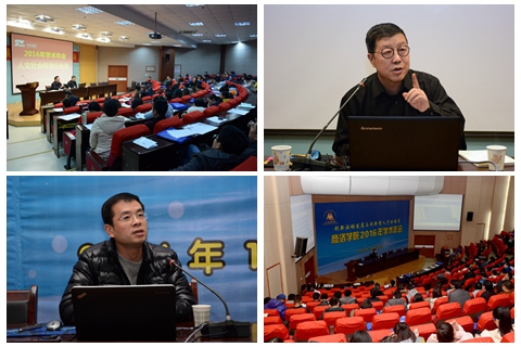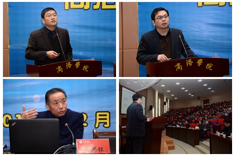 12月23日,我校隆重舉行以“創新驅動發展與創新型人才的培養”為主題的2016年學術年會。校領導范新會、王思懷、魏書堂、彭虎軍、劉寶盈出席年會。中國地質大學(武漢)張江龍、羅林波教授,校紀委書記王思懷教授,西安市作協副主席、《美文》常務副主編穆濤教授,丹鳳縣人民政府副縣長、西安工業大學副教授曾凡奎博士在年會上做了學術報告。全校科級以上干部,中級職稱以上人員,全體教師,科技處、教務處、教學評估中心全體人員和學生代表參加了年會。
