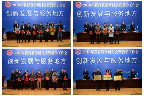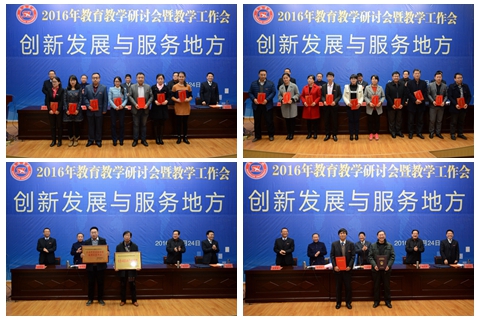 大會對我校2016年度優秀教案及優秀電子課件、教育實習優秀指導教師和優秀實習生、教育教學研討會優秀論文及優秀組織單位、青年教師教學技能競賽優勝者、校級以上本科教學工程項目及教學名師進行了表彰。副校長魏書堂宣讀了表彰決定。在熱烈的掌聲中,出席大會的校領導為受表彰的集體和個人代表頒發了獲獎證書。陜西省第十屆教學名師、化材學院院長周春生,2016年青年教師教學技能大賽一等獎獲得者李亞文分別作了發言。