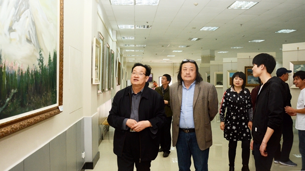 魏書堂一行詳細了解了展出作品的素材來源、表現技法及創作過程,并對作品質量給予了高度評價。魏書堂勉勵藝術學院師生進一步凝練秦嶺畫派創作方向,把藝術創作融入教學過程,多出精品。