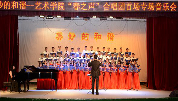 藝術(shù)學(xué)院“春之聲”合唱團(tuán)成立于2017年3月,團(tuán)員從音樂學(xué)專業(yè)大一、大二、大三年級學(xué)生中選拔產(chǎn)生,現(xiàn)有成員60人。合唱團(tuán)的成立,旨在促進(jìn)我校音樂學(xué)專業(yè)的建設(shè)與發(fā)展,推動校園文化建設(shè),提高學(xué)生的音樂綜合素質(zhì)和藝術(shù)修養(yǎng)。