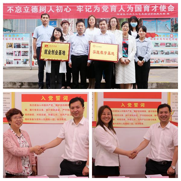 劉麥霞、魯綿茸分別代表學校與合作單位簽訂了創業就業基地協議和教育實習基地協議。