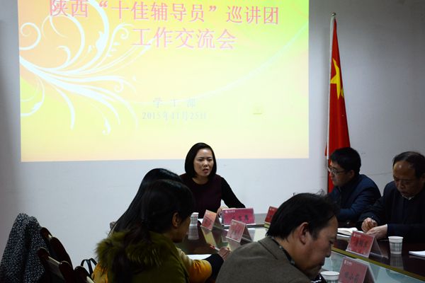 11月25日,陜西省“十佳輔導(dǎo)員”巡講團(tuán)成員顧蓉、楊紅濤來我校開展宣講交流活動。校內(nèi)各二級學(xué)院黨總支負(fù)責(zé)人及輔導(dǎo)員代表參加會議。活動由學(xué)工部部長石啟英主持。