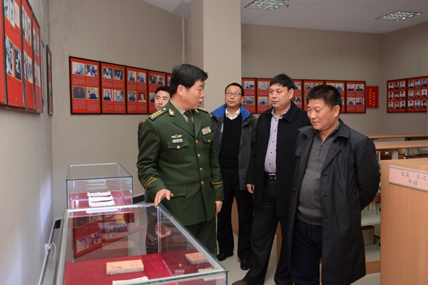 12月3日上午,武警工程大學(xué)軍事基礎(chǔ)教育學(xué)院政委曹學(xué)義、副院長(zhǎng)王勇一行6人專(zhuān)程來(lái)到我校,考察商洛紅色文化資料館,就紅軍長(zhǎng)征史料進(jìn)行調(diào)研和交流,并向我校捐贈(zèng)圖書(shū)。黨委副書(shū)記、副校長(zhǎng)范新會(huì),副校長(zhǎng)劉寶盈熱情接待了曹學(xué)義一行。