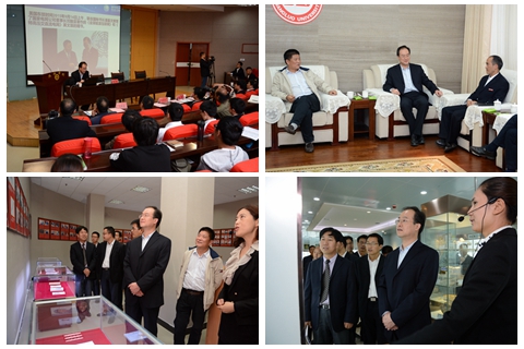 在范新會的陪同下,李琦一行參觀了我校校園及各特色展廳,與電信學院負責人及師生代表就合作共建電氣工程及其自動化專業情況進行了座談。