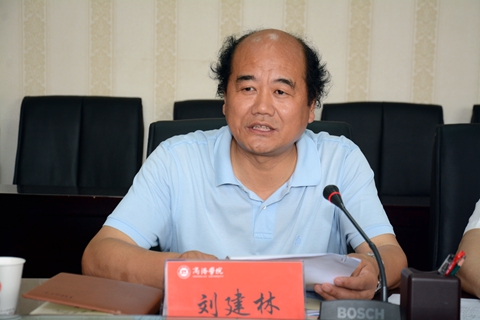 劉建林在致辭中介紹了我校基本情況和改革發展成果。他指出,郭校長一行蒞臨我校訪問交流,是我們增進了解、建立合作的一個新起點,衷心希望我們能在教學、科研、師資隊伍培養及后勤改革等方面開展合作與交流,共同促進兩校的教育事業繁榮發展。
