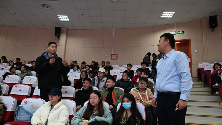 講座互動環節,參會學生積極就自己關心關切的生涯規劃、求職就業等方面問題開展提問,馮瑞辰進行了耐心細致解答并給出專業、具體的建議和指導。