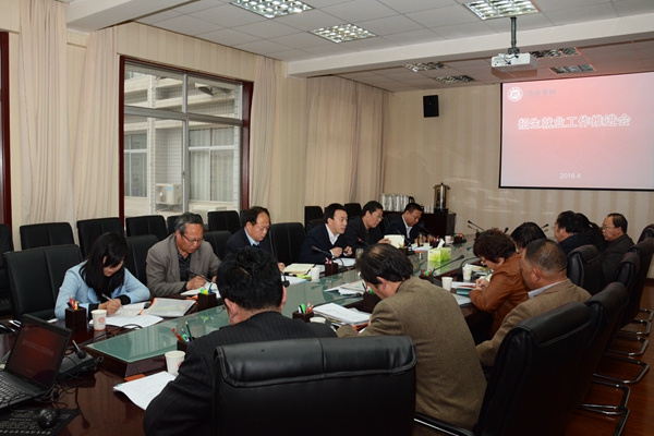 4月5日下午,校黨委副書記彭虎軍主持召開招生就業工作推進會,總結前一階段招生就業工作,安排部署后一階段招生就業工作。教務處、學生處、招生就業處、團委及各二級學院相關負責人參加會議。