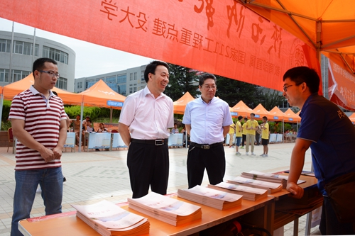 校黨委副書記彭虎軍在教務處處長李超的陪同下,來到活動現場檢查指導工作,親切看望了參加咨詢會的各高校工作人員,并囑咐我校工作人員和學生志愿者盡心盡力做好服務。