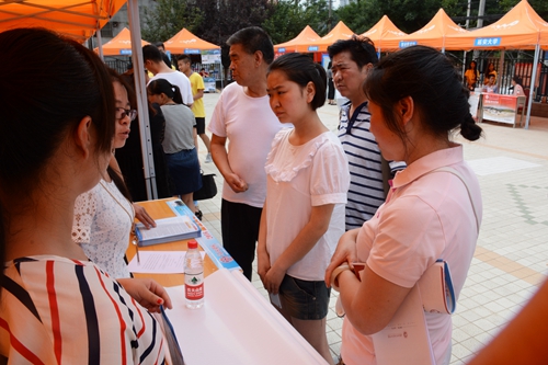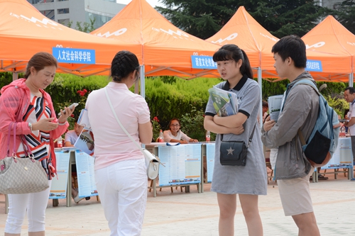 在活動現場,家長及考生們紛紛走到自己心儀的學校展臺前進行咨詢,工作人員耐心、細致地向考生和家長詳細介紹本校的錄取批次、發展概況、學科專業、辦學特色、人才培養、就業狀況、學生國際交流項目及2016年招生情況,并針對考生個人情況給予了報考指導。我校招生就業處、發展規劃與合作交流處以及各二級學院工作人員現場解答了家長和考生們關心的我校2016年招生政策、招生專業、招生計劃、專業特色和學生國際交流等情況。