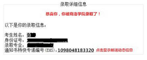 本查詢系統簡單實用,考生和家長只需用手機隨時隨地登錄商洛學院官方網站(http//:www.slxy.edu.cn),在浮動窗口中點擊“進入查詢系統”,輸入考生身份證號,即可查詢到考生錄取信息、通知書郵遞信息、入學報到須知、咨詢聯系方式等全部信息。