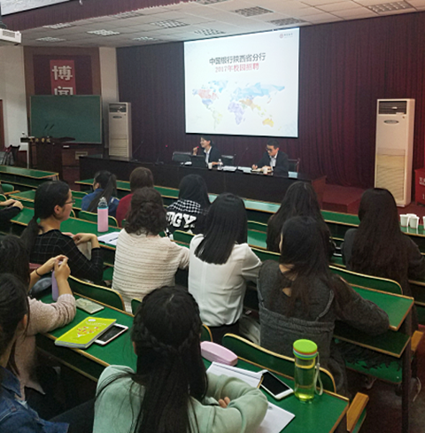 中國銀行商洛分行人力資源部負責人從企業概況、員工職業生涯規劃和2017年校園招聘安排等方面作了詳細講解,鼓勵有意向畢業生積極參加招聘,將來在工作崗位發揮專業特長,實現人生價值。