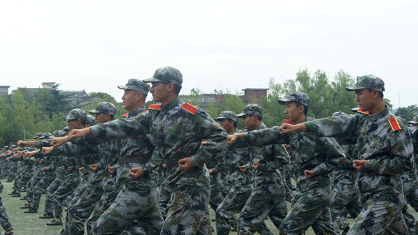 分列式結束后,學生依次進行了匕首操、五步拳匯報表演。女兵們表演的匕首操動作鏗鏘有力、一氣呵成,盡顯“鏗鏘玫瑰”風姿。全體參訓學生共同完成的五步拳表演,出拳虎虎生風、剛勁有力,每一個動作都干凈利落,揮舞間游刃有余,博得大家的陣陣喝彩。