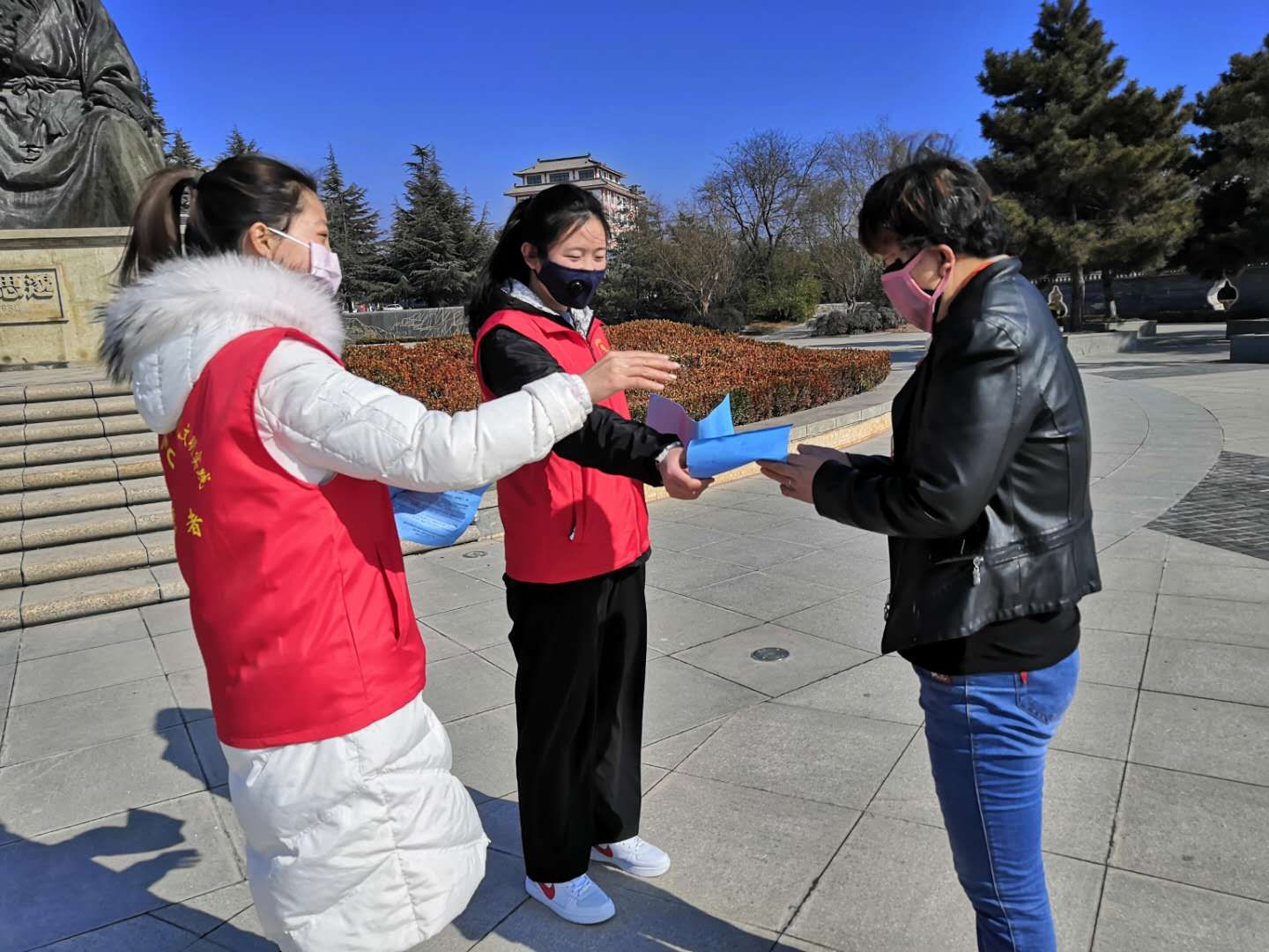 焦思娟與同伴一起發(fā)放疫情防控宣傳冊