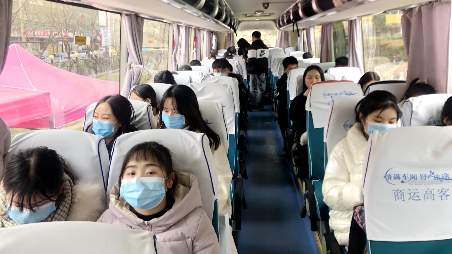目前,該項工作已開展3天,累計轉運離校返家學生4300余人,為學生提供了不出校門就能便捷乘車的“直通”服務,獲得了大家的一致好評,他們紛紛點贊表示:“學校無微不至的關懷讓身為“商院人”的我們感動,回家后一定會牢記學校的囑托,自覺做好個人防護,帶頭遵守當地疫情防控要求,嚴格執行健康打卡制度,為自己的安全負責,為青春的夢想奮斗。”