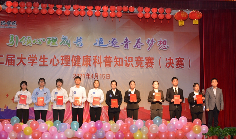 4月15日下午,我校第二屆大學生心理健康科普知識競賽在大學生活動中心舉辦決賽。校黨委副書記彭虎軍蒞臨現場并為獲獎人員頒獎。學生處負責人,各二級學院黨總支書記、學工辦主任、全體輔導員以及學生代表共400余人觀看了比賽。