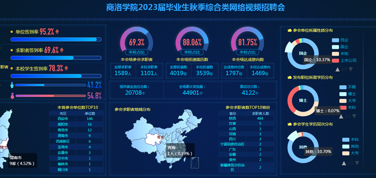 為積極克服疫情帶來的不利影響,扎實做好2023屆畢業生就業工作,11月30日,我校舉辦2023屆畢業生秋季綜合類網絡視頻招聘會。我校入場求職學生1101人,累計投遞簡歷3539份、在線參加面試4122人(次),初步達成就業意向1469人(次)。