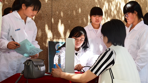 活動分為義診、有獎競猜、護(hù)理禮儀展示三個環(huán)節(jié)。活動現(xiàn)場,生物學(xué)院首屆護(hù)理專業(yè)學(xué)生身穿潔白護(hù)士服為參與者測量身高、體重、血壓和體溫,并根據(jù)測量結(jié)果給出科學(xué)的護(hù)理建議;同學(xué)們競相參與護(hù)理常識有獎競猜,既活躍了校園氣氛,又普及了護(hù)理及養(yǎng)生方面的知識;護(hù)理專業(yè)師生為同學(xué)們介紹護(hù)士節(jié)的由來,展示護(hù)理禮儀,吸引了眾多師生駐足參與。