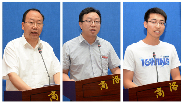 先進集體代表、生物學院黨總支書記丁爭尚教授,教師代表、電信學院袁訓鋒博士,學生代表、經管學院信管1402班賈祥同學作了發言。