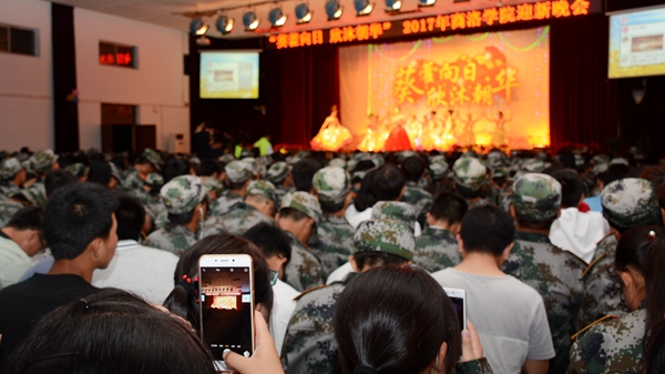 9月19日晚,以”葵藿向日、欣沐朝華”為主題的2017年迎新晚會在大學生活動中心隆重上演。校領導龍治剛、范新會、魏書堂、劉寶盈、劉勇同師生一同觀看了晚會。晚會由校團委、學工部主辦。