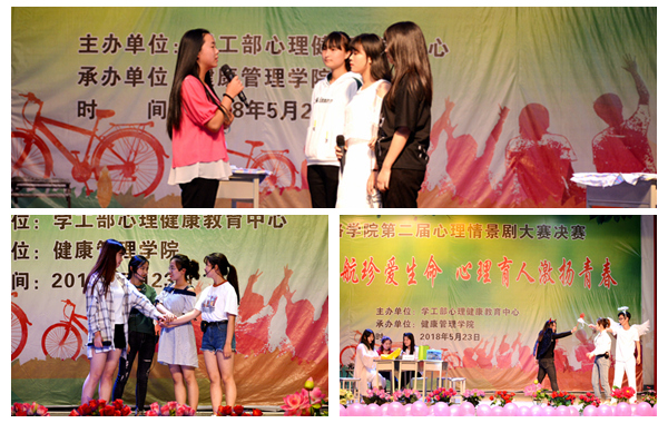 5月23日晚,以“陽光護(hù)航助力成長,心理育人善待生命”為主題的我校第二屆校園心理情景劇大賽在大學(xué)生活動(dòng)中心舉行。本次大賽由學(xué)生處與健康管理學(xué)院聯(lián)合舉辦。各二級學(xué)院黨總支書記、全體輔導(dǎo)員、學(xué)生代表共500余人觀看了比賽。