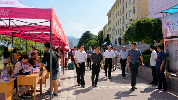 2018年我校面向28個省(市、自治區)錄取新生3593人。為了確保新生報到工作順利開展,9月4號下午,校長范新會、副校長魏書堂、黨委副書記彭虎軍、副校長劉勇帶領院長辦公室、宣傳部、校團委、教務處、學生處、財務處、后勤保障處、保衛處、信息中心等相關職能部門負責人,深入各個迎新接待場點,檢查指導迎新工作。