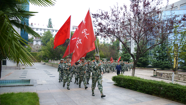 為確保此次拉練順利完成,學(xué)校做了周密的安排部署。保衛(wèi)處與地方交管部門協(xié)調(diào)配合,為行軍隊伍準備了指揮車、醫(yī)務(wù)車和保障車,在十字路口等處部署交警協(xié)助指揮交通;學(xué)生處、各二級學(xué)院黨總支負責(zé)人和新生輔導(dǎo)員全程跟隨行軍隊伍,重要路口警戒,重點關(guān)注掉隊人員,輔導(dǎo)員走在隊伍右后方,確保拉練活動圓滿完成。歷經(jīng)三小時后,所有新生順利返回北新街校區(qū)。在行軍過程中,同學(xué)們相互陪伴相互扶持,互相打氣加油,他們邁著堅定的步伐,氣勢昂揚地堅持到軍訓(xùn)拉練的終點。