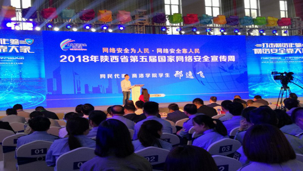 我校100余名師生參加開幕式,電信學院學生邢逸飛作為全省唯一的網民代表在開幕式上發言。邢逸飛說,自己是商洛學院的一名網絡評論員、學生記者,因為經常性參加學校組織的培訓交流活動,所以對網絡宣傳和輿論引導的重要性有著切身的認識。維護網絡安全,爭做中國好網民,大學生要發揮好“排頭兵”的作用。他在大會上代表大學生和廣大網民鄭重承諾:一要提高政治站位,積極參加學校和網信部門舉辦的形式多樣的網絡安全教育活動,帶頭在校園中宣傳網絡安全知識,讓“網絡安全為人民,網絡安全靠人民”的理念深入人心;二要堅守網絡理性,明辨慎思,不人云亦云亂跟風,杜絕形形色色的網絡誘惑,保持客觀理性地接收信息、傳播信息,要慎重地轉發,客觀地進行評論,既不當傳謠者,也不做“網絡暴民”;三要遵守網絡法規,做網絡安全法的宣傳者,做網絡安全法的執行者,做網絡安全法的捍衛者,做網絡安全法的建設者;四要用網而不沉溺于網絡,用青春傳播正能量,踐行社會主義核心價值觀,把自己鍛造成堪當民族復興大任的時代新人。