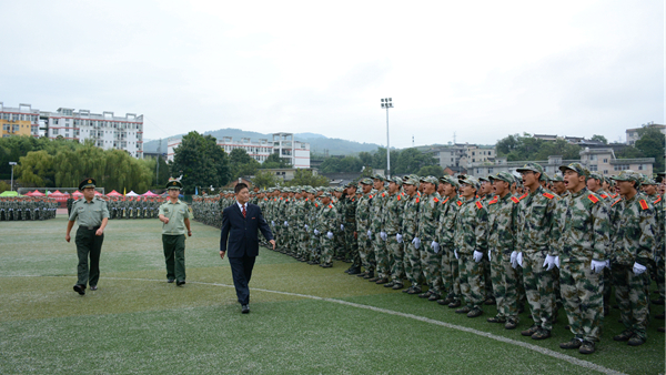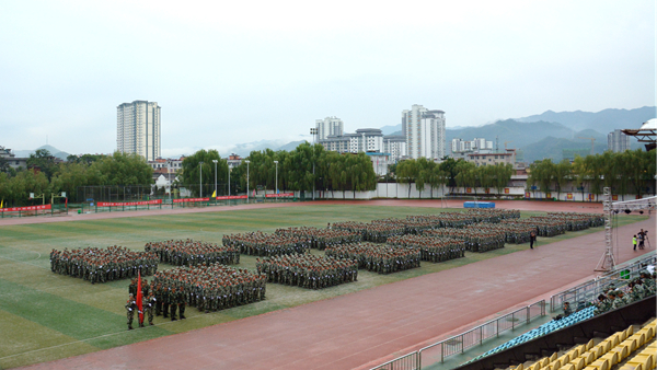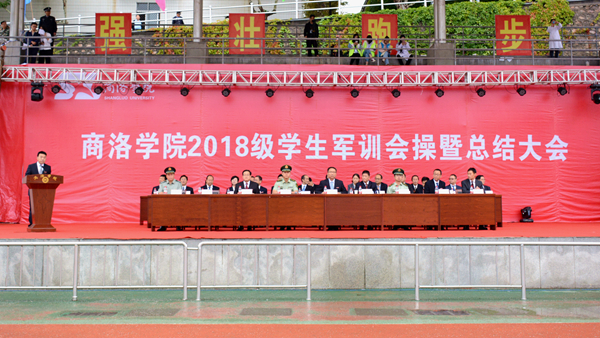 汗水書寫青春,磨練見證成長。9月20日,我校隆重舉行2018級學生軍訓會操暨總結大會,檢閱2018級學生軍訓成果,并對軍訓中表現突出的先進集體與先進個人進行表彰。校領導龍治剛、范新會、魏書堂、劉寶盈、劉勇,中國人民武警部隊商洛支隊副參謀長、軍訓團團長呂喆少校,中國人民武警部隊商洛支隊執勤一大隊隊長郭偉少校出席大會。各二級學院黨政主要負責人、有關職能部門負責人、全體2018級學生及輔導員參加了大會。大會由黨委副書記彭虎軍主持。