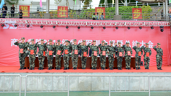 匯報表演結束后,與會領導分別為軍訓隊列先進集體、軍訓內務整理先進集體、軍訓工作優秀教官、軍訓工作先進個人、參訓優勝標兵頒發了獎牌和榮譽證書。