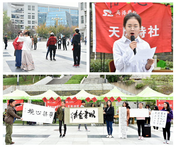 舉行“九九重陽心濃濃社團情”文藝演出。清商漢服學社、書畫協(xié)會、丹江文學社等社團在學校一號教學樓后的玉蘭廣場表演了精彩的文藝節(jié)目,以“文”“舞”結(jié)合演繹中國傳統(tǒng)文化的絢爛多彩,為重陽佳節(jié)增彩助興,吸引了眾多師生駐足欣賞。活動現(xiàn)場,漢服愛好者以靈動曼妙之姿將漢服之美、民族經(jīng)典演繹的淋漓盡致;天風詩社成員現(xiàn)場解讀詞作《阮郎歸》,聲情并茂、情真意切地展現(xiàn)了中華詩詞的優(yōu)美雅致;書法表演者以行云流水的筆法,與觀眾一同品味書法墨香、傳承經(jīng)典文化。