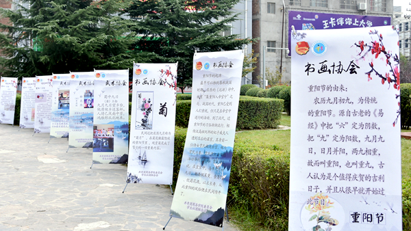 舉辦“禮樂重陽 薪火相傳”傳統(tǒng)文化藝術(shù)展。校團委精心制作20多幅海報,于重陽節(jié)當天在一號教學樓前展出,展覽圍繞重陽節(jié)的由來、起源、習俗、相關(guān)詩詞等方面,詳細介紹了重陽節(jié)的歷史與文化內(nèi)涵,激發(fā)了當代大學生對傳統(tǒng)文化的熱情,營造了尊老敬老、歡度重陽佳節(jié)的校園文化氛圍,受到了師生的歡迎。