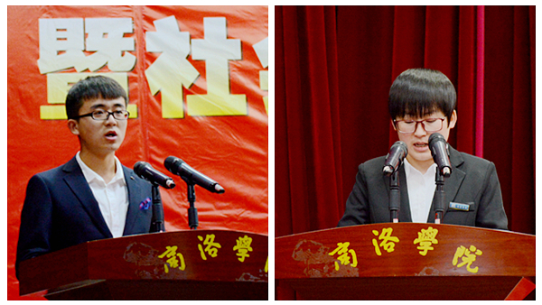 國家獎學金獲得者漢語1604班田一漢、“十佳大學生”生科1501班趙盟分別代表受表彰的先進個人和受資助學生作了發言。