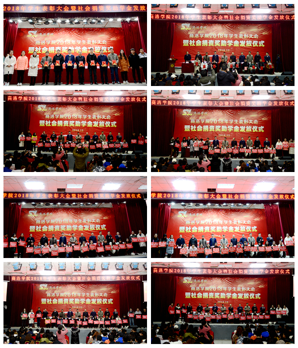 12月12日,我校舉行2018年學生表彰大會暨社會捐資獎助學金發放儀式。校長范新會、黨委副書記彭虎軍,國網陜西省電力公司商洛供電公司黨委書記陳飛、中國移動商洛分公司總經理王穎、中國電信商洛分公司總經理范圳、中國郵政商洛市分公司調研員王林、中國聯通商洛市分公司副總經理陳安民、陜西森弗天然制品有限公司黨支部書記杜永茂、廣東校友基金會副會長徐吉印等出席大會。大會由學工部部長石啟英主持。