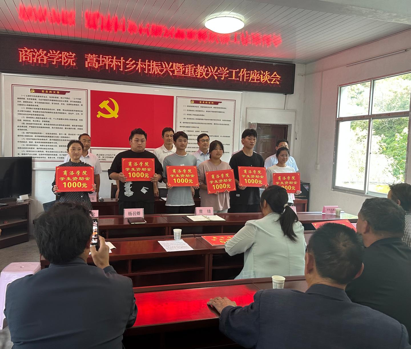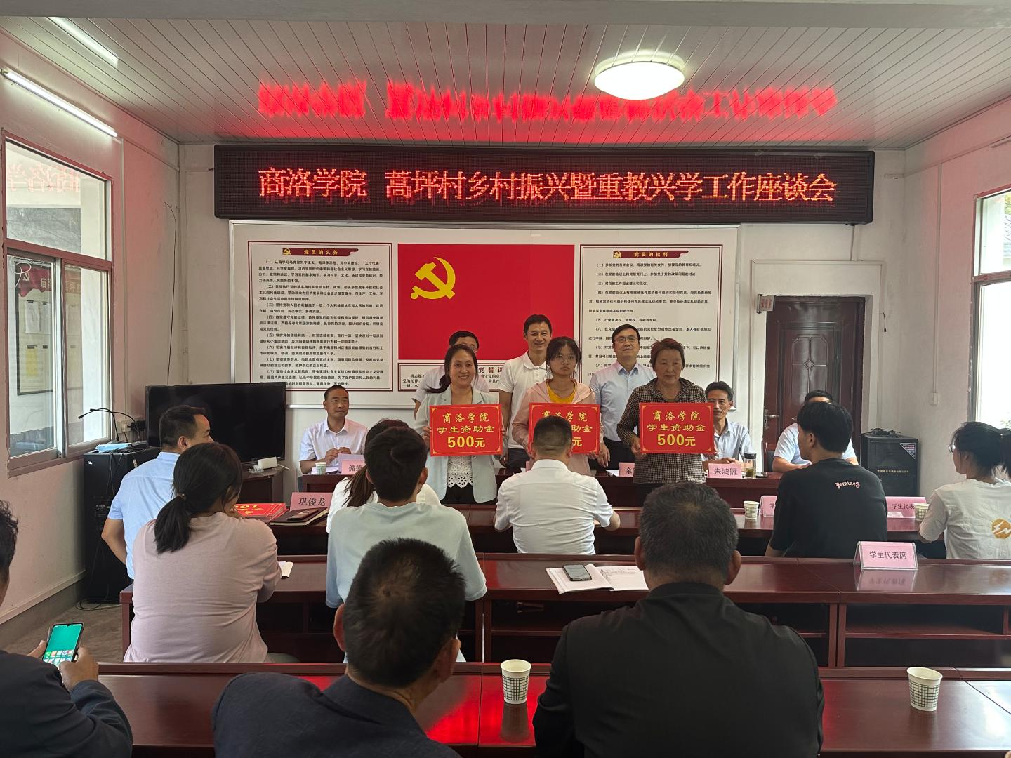 座談會上,劉勇代表學校為蒿坪村2023年錄取大學生和高中生發放助學金。他對受資助學生考入各自理想的學校表示祝賀,并希望學生們一是要心懷夢想,明晰目標,通過不斷學習,讓夢想照進現實,用知識實現夢想;二是要持之以恒,鍥而不舍,不斷積累,人生終將有所成就。校地雙方還就鄉村振興、產業發展等事項進行了深入座談交流。
