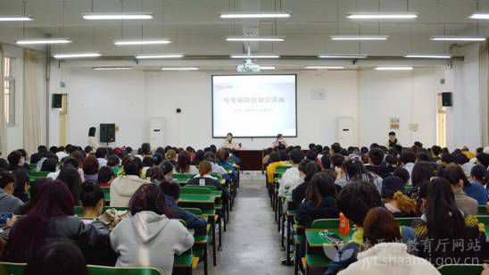【商洛學院】11月18日,該院邀請商洛市中心醫院感染二科主任醫師李藝為師生作傳染病防治知識講座。李藝在講座中科普了日常生活中常見的傳染病預防方法,介紹了肺結核病癥的感染原理、預防途徑、治療手段等相關知識,并以《青少年與艾滋病預防》為題為在場師生講解了艾滋病的傳播途徑、防治措施、易感人群等相關情況。通過本次講座,增進了師生對傳染病防控基礎知識的了解,加強了自我防范意識,提高了自身防控能力,對該院傳染病防控工作的開展起到了積極推動作用。11月25日下午,該院與商洛市健康教育中心、商洛市婦幼保健院聯合舉辦“健康教育與健康促進行動”健康生活方式養成與性傳播疾病防治專題講座。商洛市婦幼保健計劃生育服務中心主任醫師姚吉民以健康生活方式為主題,為在場師生分析了加強健康教育,養成健康生活方式的重要性。他指出,健康包括身體、心理、社會適應三方面的良好狀態,三者缺一不可,健康生活需要合理膳食、適量運動、戒煙限酒、心理平衡四個方面協調發展。商洛市婦幼保健院婦產醫院婦科副主任醫師李麗在講座中介紹了與傳染病相關的基礎知識,詳細講解了性傳播疾病的危害、種類、傳播方式,以及各種性病的臨床表現和治療方法,并就艾滋病的防治知識作了簡單介紹。本次講座持續兩個多小時,兩位醫師的講授內容豐富、通俗易懂,獲得現場200余位學生的一致歡迎和普遍認可,紛紛表示要樹立健康生活理念,養成良好生活習慣,共建文明健康校園。