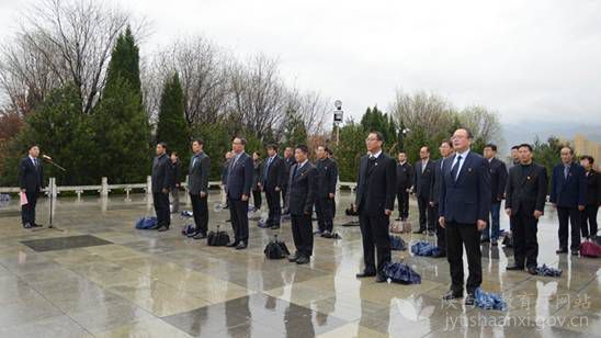 【商洛學院】4月2日下午,該院黨委在商洛市烈士陵園開展清明節“學黨史祭英烈鑄師魂”主題活動。該院全體校領導出席活動,該院黨委委員、黨委理論學習中心組成員,各黨總支、直屬黨支部書記參加活動。該院黨委書記龍治剛代表學院向英烈敬獻花籃。該院黨委副書記彭虎軍主持活動。在紛紛細雨下,金鳳山紅軍廣場松柏掩映,中國工農紅軍七十四師紀念碑巍然聳立。該院黨員領導干部在紀念碑前整齊列隊,齊聲高唱國歌,并向為民族解放和人民幸福獻出生命的革命先烈默哀。伴隨著莊嚴肅穆的《獻花曲》,該院國旗護衛隊禮兵托起花籃,邁著莊重的步伐走向紀念碑,將花籃輕輕擺放在紀念碑前。龍治剛緩步上前,仔細整理花籃緞帶。全體人員一同鞠躬致敬,表達對革命先烈的深切緬懷和崇高敬意。在龍治剛的帶領下,全體人員面向黨旗莊嚴宣誓,重溫入黨初心,表達為黨的教育事業奮斗終身的堅定決心。隨后,大家緩步繞行紀念碑一周,并向英勇犧牲的先烈獻花。瞻仰結束后,全體人員參觀了商洛市革命烈士紀念館,認真學習先烈事跡。大家一致表示,通過這次活動增長了黨史知識,感悟了紅色精神,堅定了理想信念,砥礪了初心使命,接受了一次深刻的黨史、黨性教育。今后將進一步增強黨史學習教育的政治責任感和使命感,通過學習錘煉堅如磐石的信念,弘揚敢于擔當的品格,鑄就善于落實的作風。在學習中深刻領悟當代中國馬克思主義的真理力量,賡續共產黨人的精神血脈。在新時代繼承弘揚先烈遺志,以推動學院“十四五”高質量發展、辦好人民滿意的高等教育。